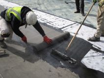 1.5 mm thick glass reinforced, modified bitumen, sanded surface bituminous membrane.