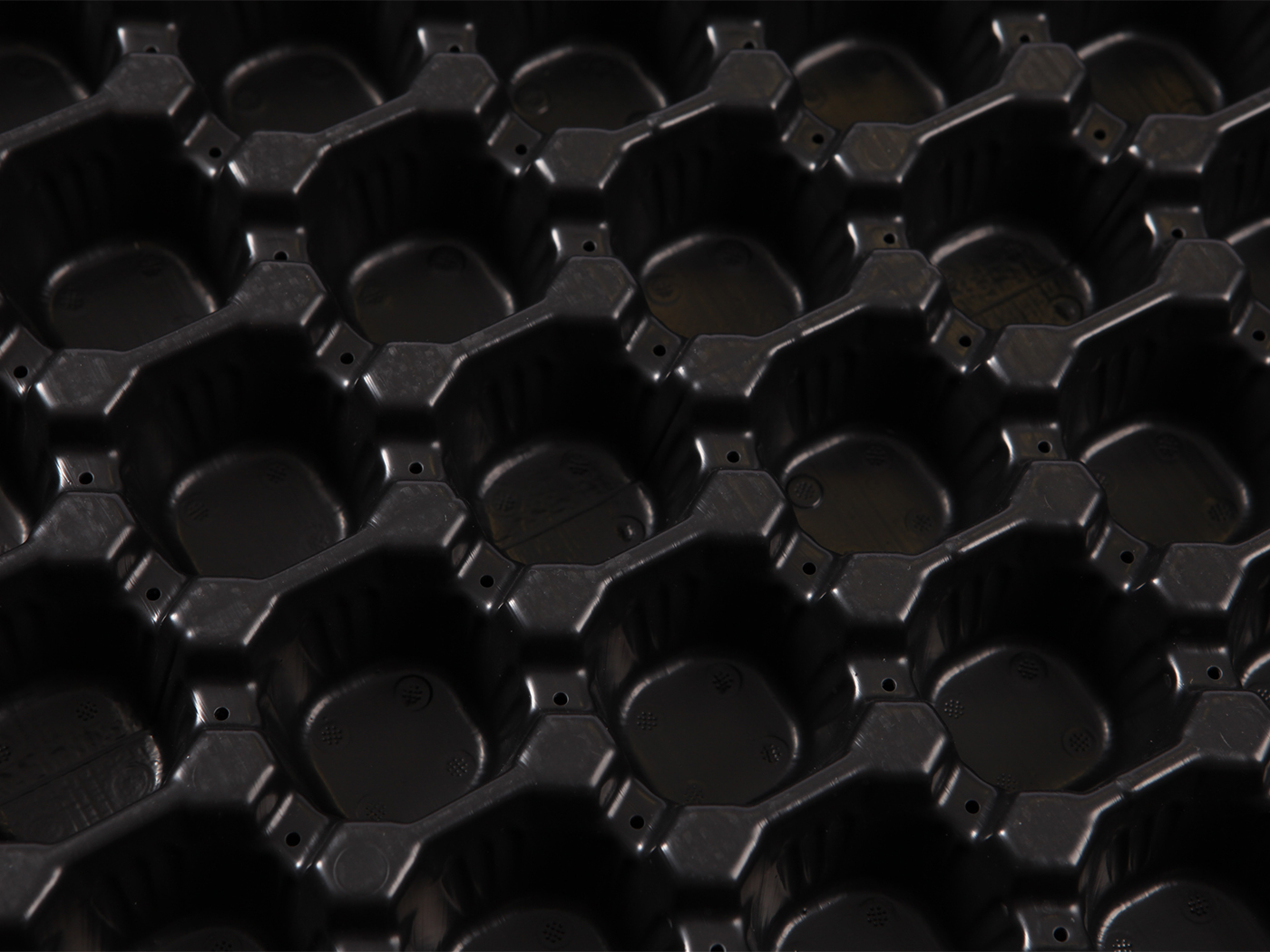 Interlocking, loose laid, water storage and multi directional drainage board for hard and soft landscaping. Can be filled with agregate (such as BauderGREEN SUB-BM UK) to improve the compressive strength of the product.