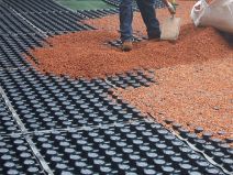 Loose laid water storage and multi directional drainage board for hard and soft landscaping. Can be filled with aggregate (such as BauderGREEN SUB-BM UK) to improve the compressive strength of the product.