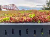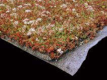 A lightweight sedum blanket system including integral moisture mat, designed for roof structures that require minimal weight loading. It can be installed with SDF L drainage mat on roofs with <2 degrees fall.