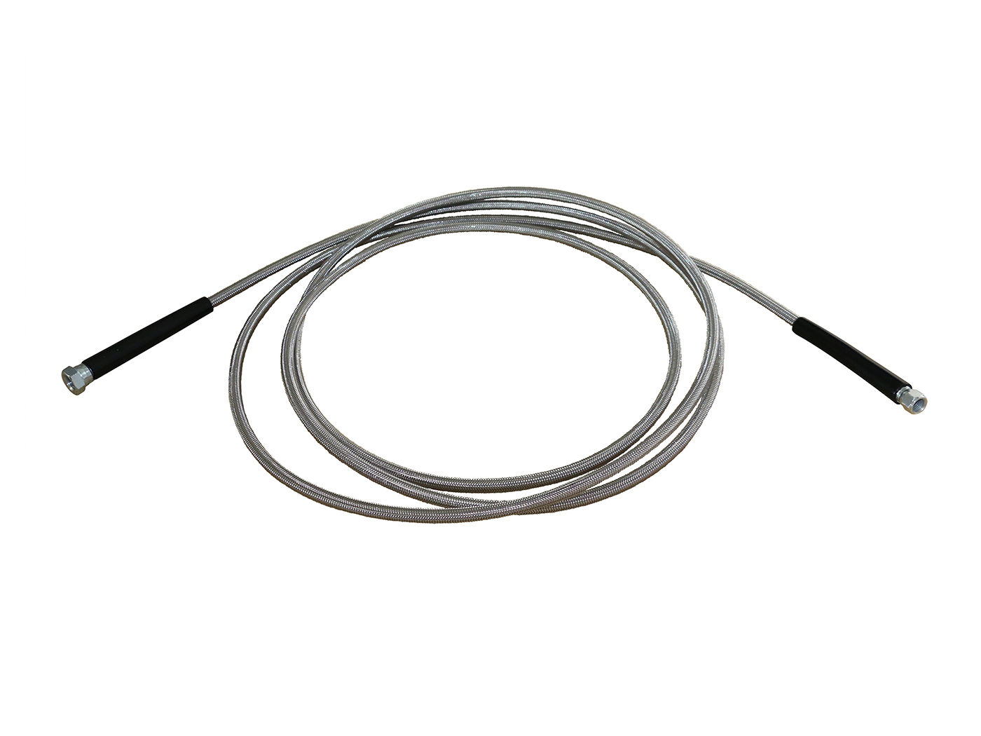 A moisture-blocking metal braided hose for use with Bauder canister adhesives and primers.