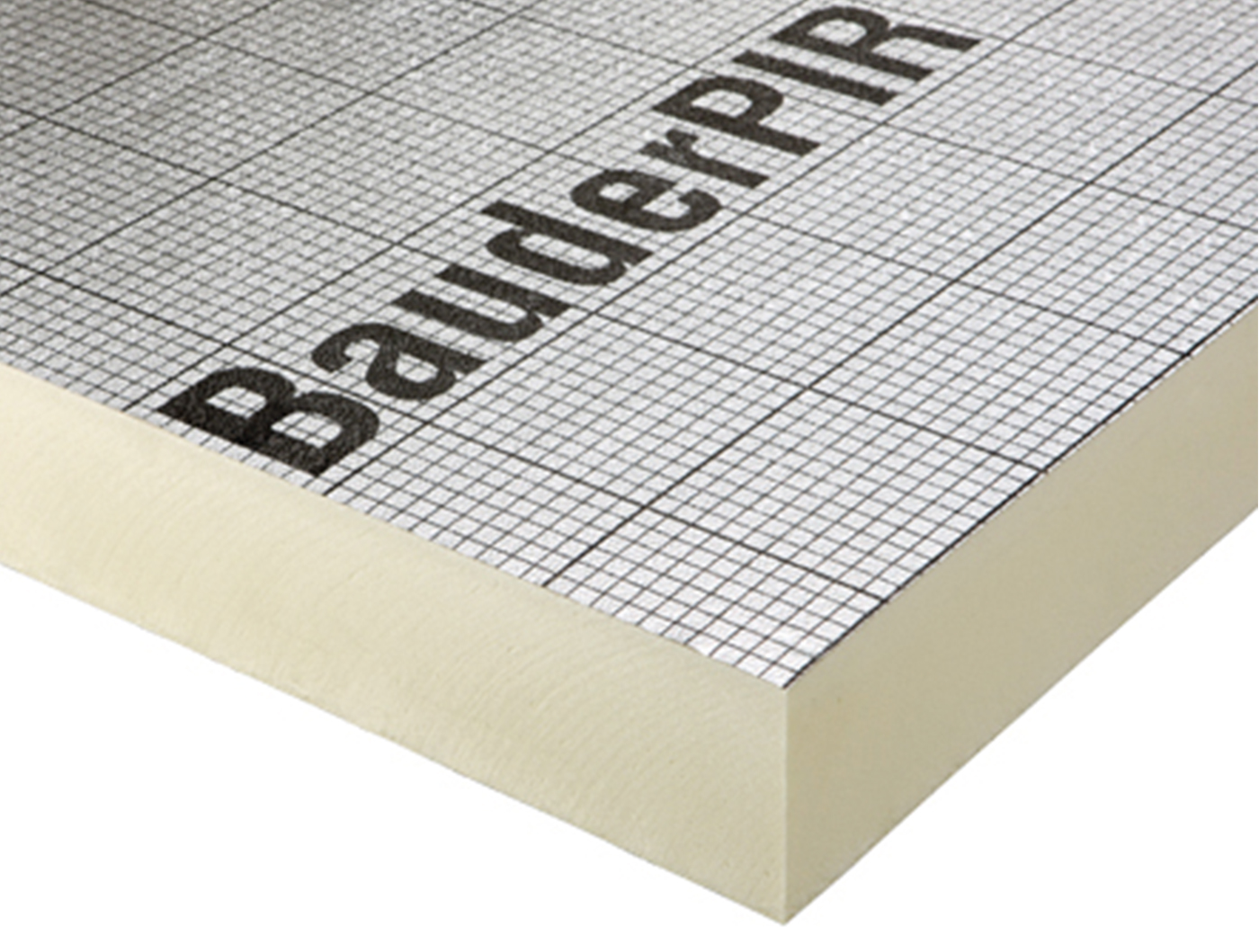 Rigid polyurethane foam board faced on both sides with aluminium foil. The top facing features a printed grid pattern to aid cutting on site.