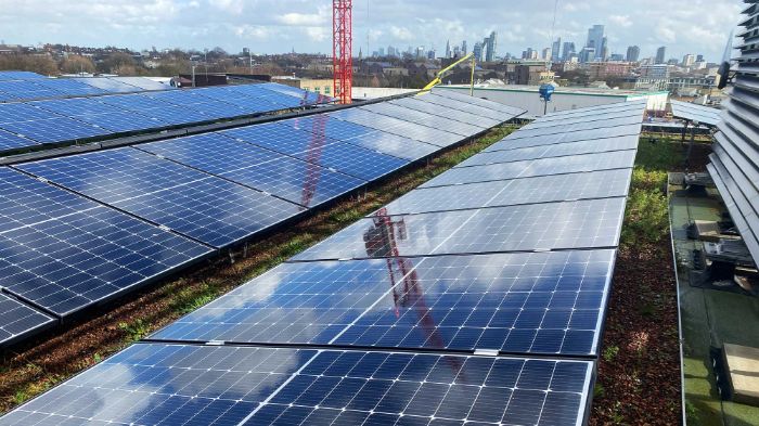 Biosolar photovoltaic mounting system for specification with a green roof or blue roof with a vegetated finish to enhance the sustainable benefits for the environment.
