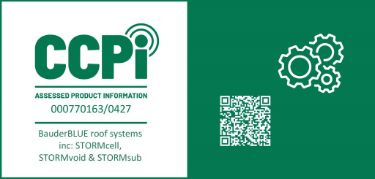 BauderBLUE STORMcell achieves a CCPI mark which recognises that any claims made about it have been independently assessed across 11 clauses, providing greater clarity by offering improved product information. This gives specifiers confidence in the knowledge that they will have unambiguous information when deciding which of our systems is best for their new build or refurbishment project.