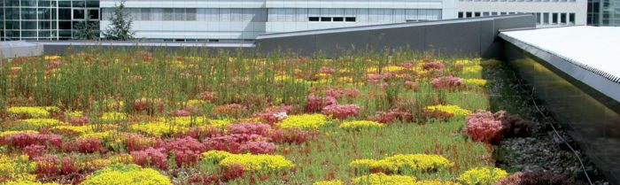 Extensive or biodiverse vegetation finishes can be coupled with a biosolar PV array for maximum environmental advantage.